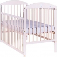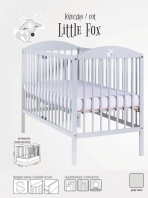 Svetlosivá postieľka s aplikáciou malej líšky. Ľahká drevená postieľka s obľúbenou aplikáciou malej líšky.