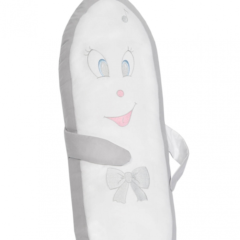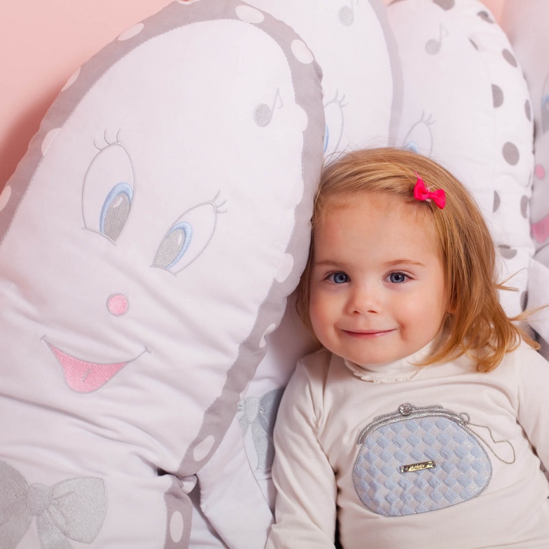 Slečna Tuliś® je mäkký dlhý a oválny vankúš , ktorý vďaka tvaru slúži aj ako opierka a podpora v každej polohe. Je vyrobená z bezpečných materiálov najvyššej kvality v upokojujúcich pastelových farbách . Výplň tvorí silikónové vlákno 1.triedy vďaka čomu si vankúš drží svoj tvar.Šťastný úsmev a ďalšie dekorácie sú vyšívané certifikovanými niťami Oeko tex.