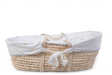 Childhome Mojžišov kôš pre bábätko +matrac natural+ poťah biely/zlaté bodky