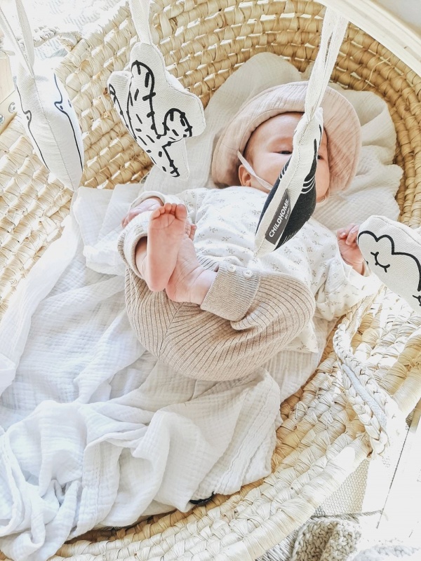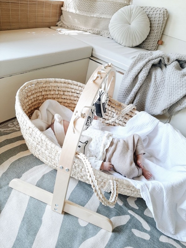 Childhome prírodný "Mojžišov kôš " na bábätko v krásnom prírodnom dizajne. Je vyrobený z kukuričných vlákien a jeho súčasťou je mäkký matrac s poťahom.