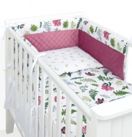 3 časťová sada s prírodným motívom a jemným prešívaných chráničom Velvet Lux. Sada obsahuje 2 časťovú sadu vhodnú do postieľky 120x90 cm a mäkký pevný chránič. Zapínanie na zips.