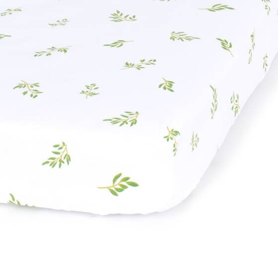 Jemné bavlnené prestieradlo s prírodným motívom a gumkou, ktorá obopne matraca a zabráni presúvaniu. 100 % bavlna, 120x60 cm.