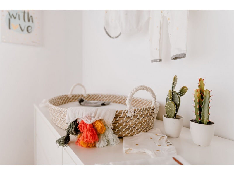 Krásny viacúčelový košík využijete ako prebaľovaciu podložku, košík na spanie pre novorodencov i ako dekoratívny doplnok do detskej izby. Slamený košík je vybavený matracov, poskytujúci správnu mäkkosť a oporu pre spanie bábätka.