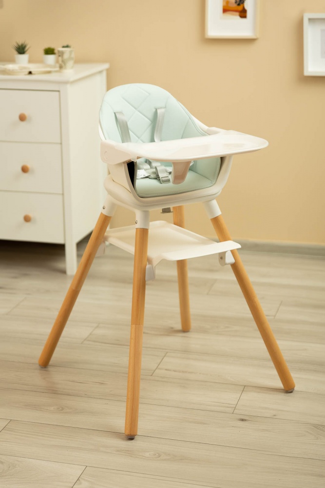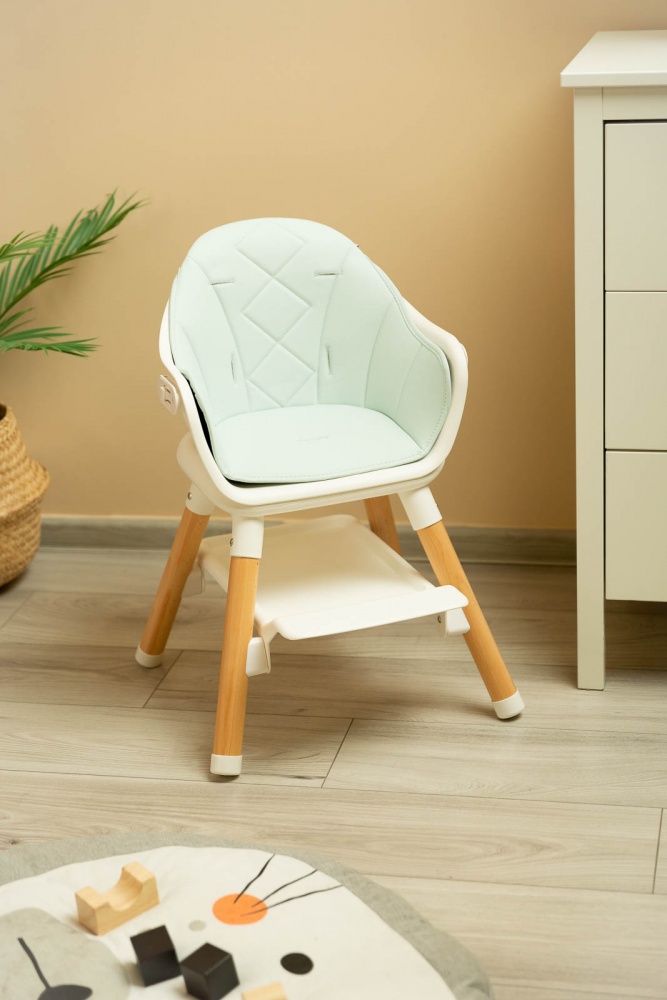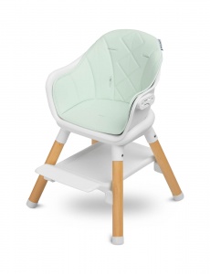 Hlavné črty: Viacúčelovosť - stoličku vysokú, ktorú možno ľahko premeniť na nízke kreslo alebo taburet Jedinečný dizajn a jemná farebnosť Mäkké, pohodlné sedadlo s päťbodovými bezpečnostnými pásikmi Solídne nohy z masívneho dreva Protipošmykové nožičky Snímateľné a ľahko čistiteľné čalúnenie z ekokože Odpínateľný pultík 2-úrovňové nastavenie opierky nožičiek Pre deti: od 6 mesiacov do 15 kg Podľa normy: 14988:2017+A1:2020