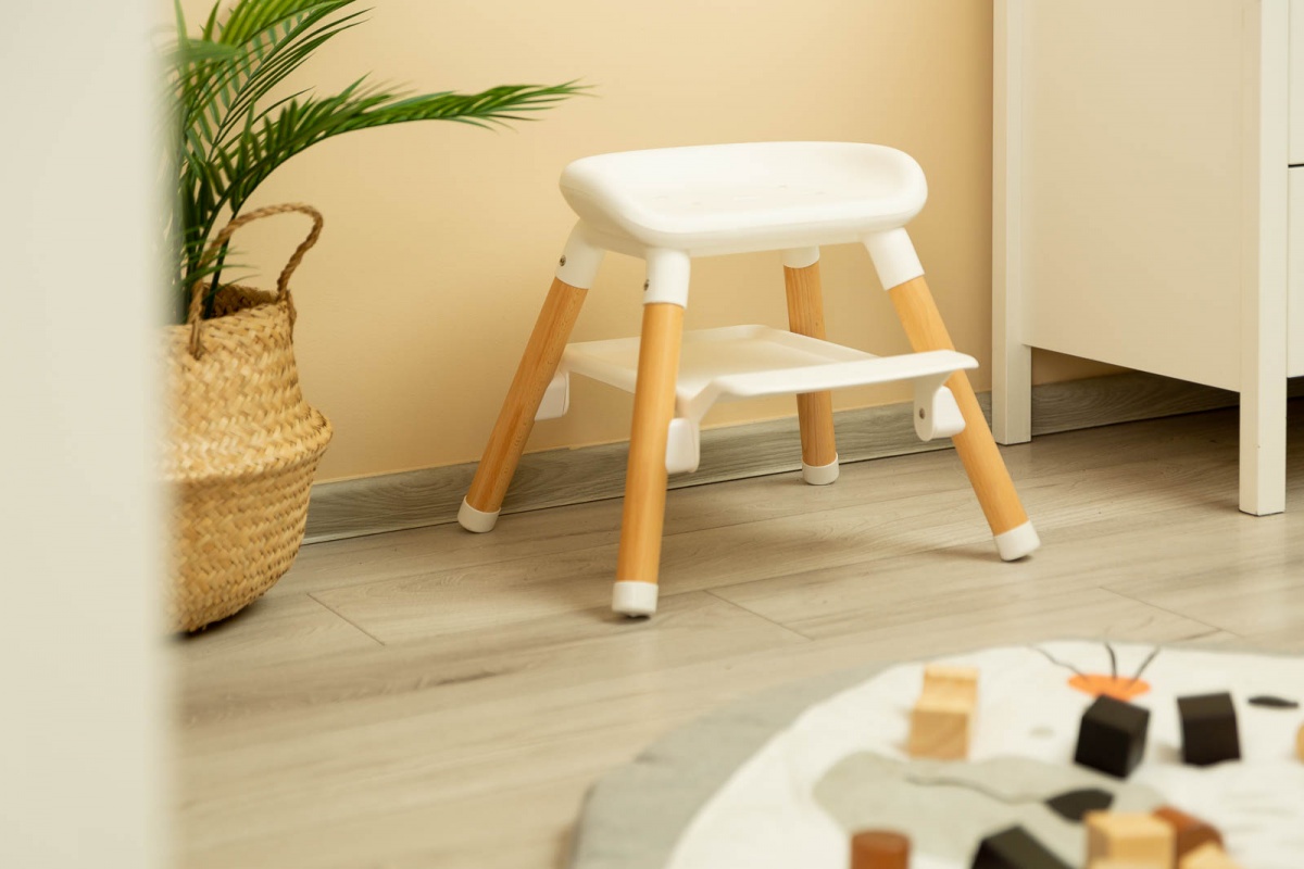 Viacúčelovosť - stoličku vysokú, ktorú možno ľahko premeniť na nízke kreslo alebo taburet