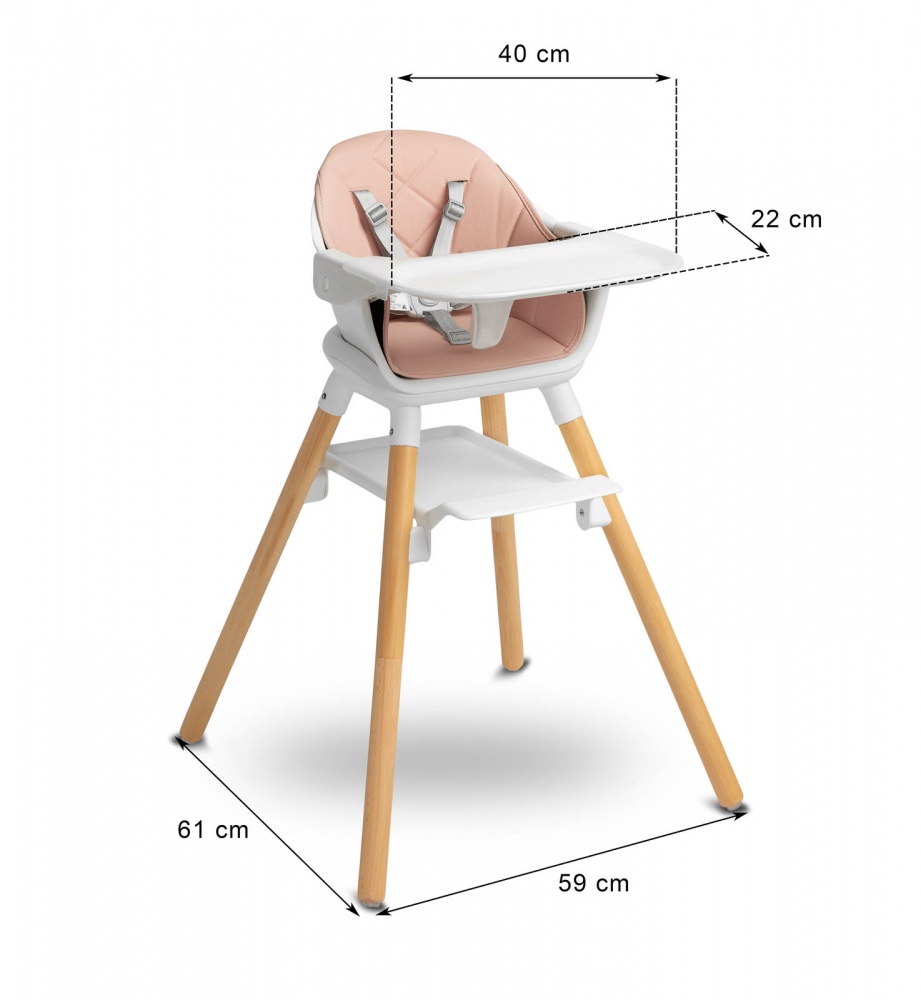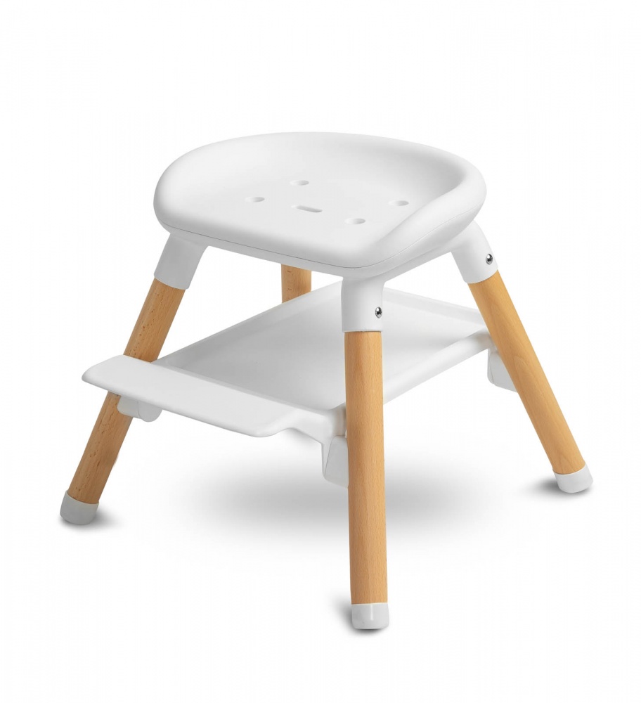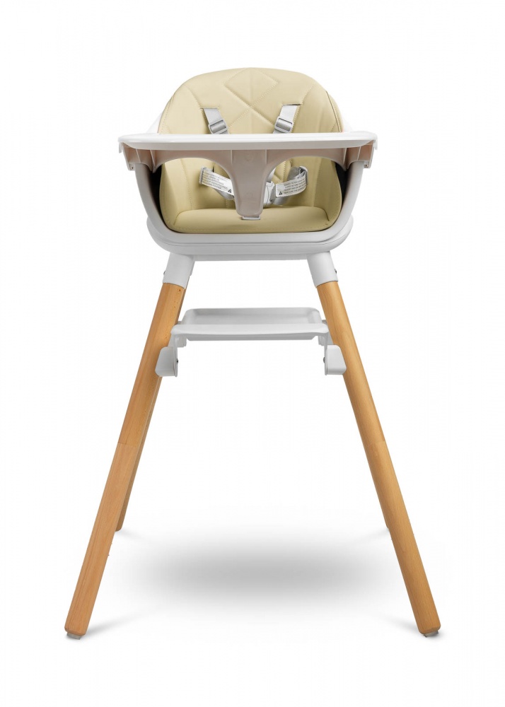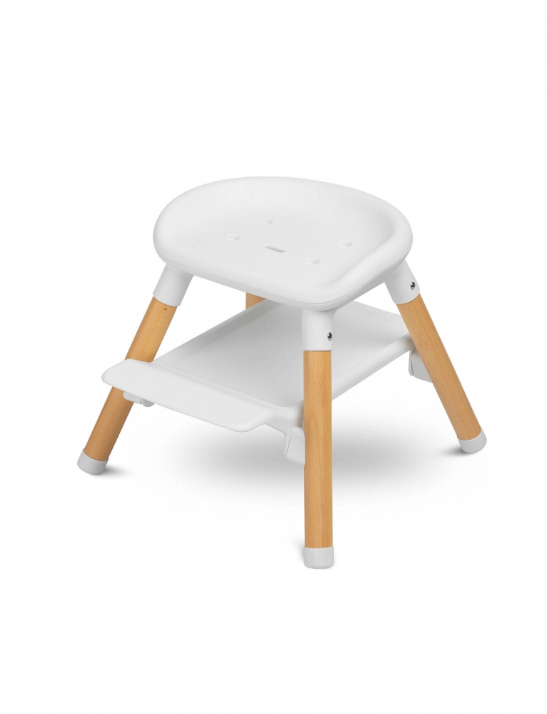 Bravo je viacúčelové: môže slúžiť ako vysoká stolička, nízke kreslo a aj taburet (vysoký a nízky). Má dve úrovne nastavenia opierky nožičiek (16 cm a 24 cm), čím poskytuje pohodlie starším deťom. Počas kŕmenia profilovaný pultík zabezpečuje, že sa nič nevyleje na podlahu, a čalúnenie z ekokože a sedadlo z umelého materiálu uľahčujú rýchle a pohodlné čistenie. Stabilitu zabezpečujú štyri nohy z masívneho dreva.