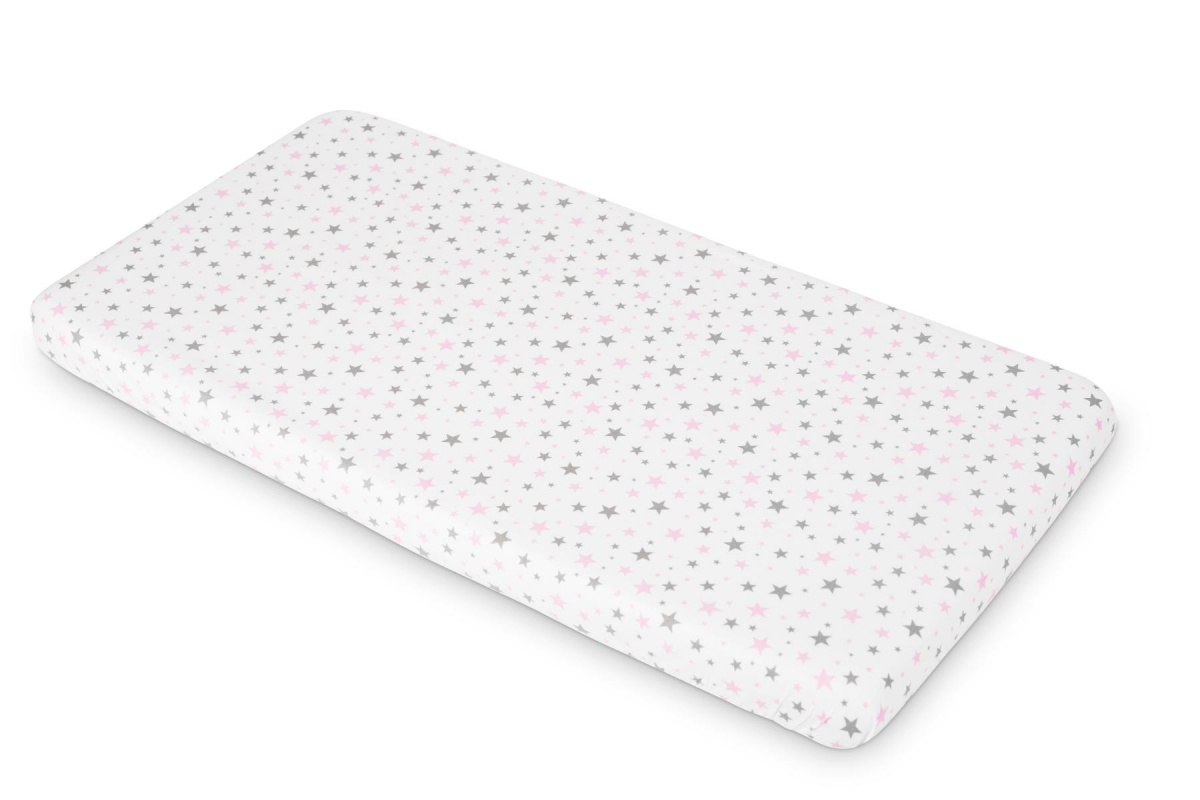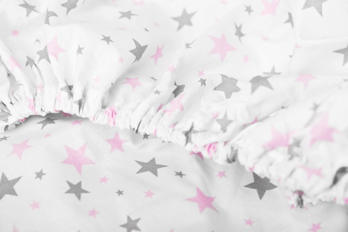 Bavlnené prestieradlo s potlačou ružovo sivých hviezdičiek 120x60 cm