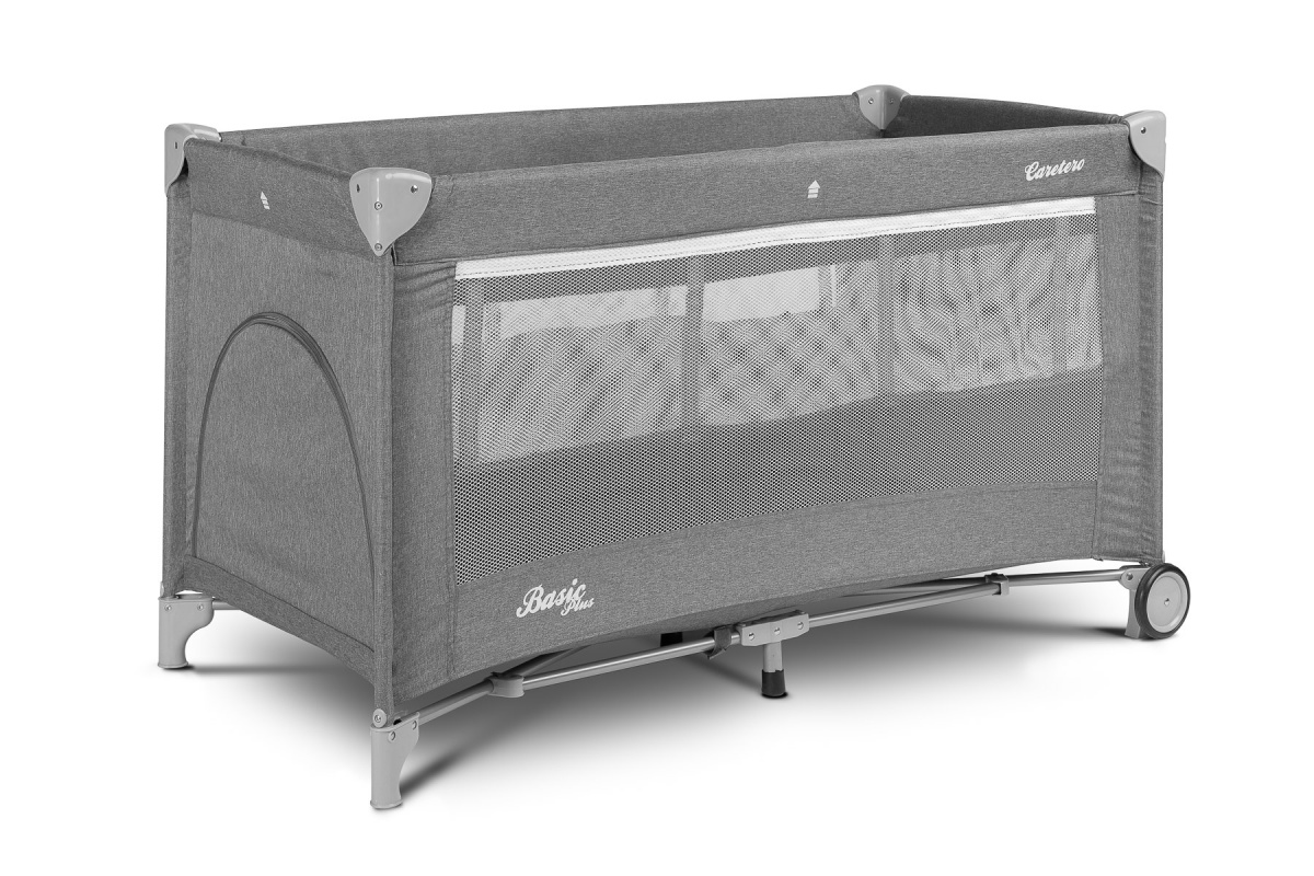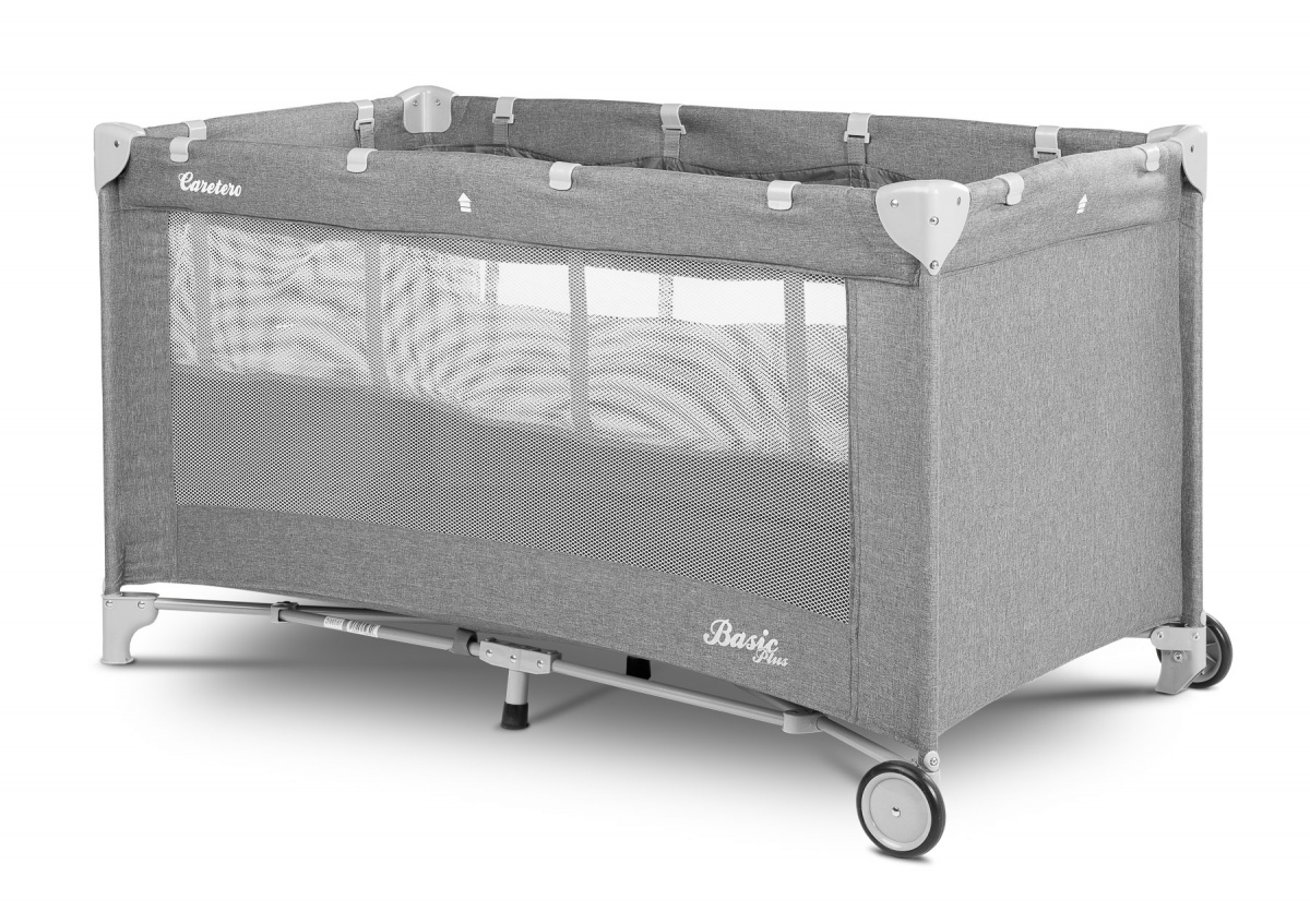 postieľka je stabilná vďaka pevným nožičkám a mobilná vďaka dvom kolesám