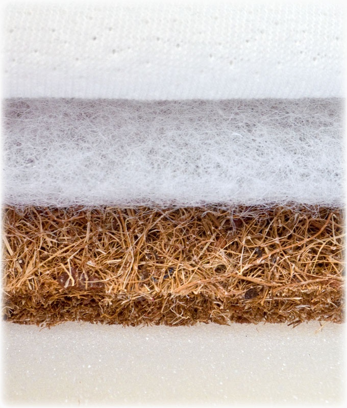 Kokosová vrstva je vyrobená zo zlisovaných kokosových vlákien, ktoré matrac spevňujú a zabraňujú jeho opotrebeniu. Táto unikátna 100% prírodná vložka neblokuje cirkuláciu vzduchu, vďaka čomu zabraňuje nadmernému poteniu a preležaninám. Vnútorná polyuretánová vrstva je 100% hypoalergénna a dáva matracu správny tvar a pružnosť.