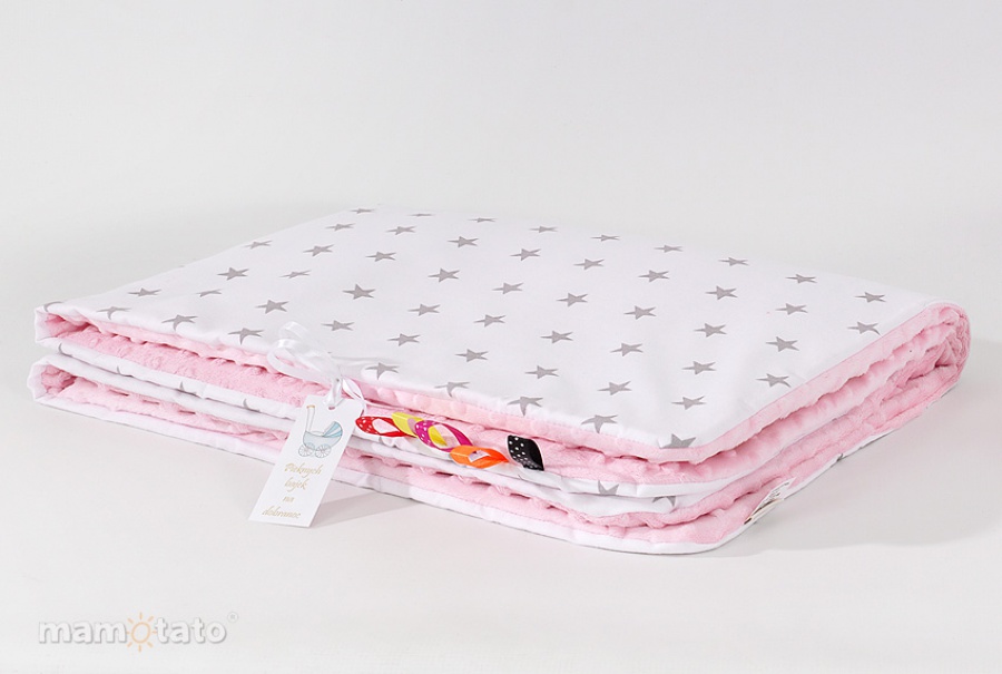 MamoTato Obojstranná deka Minky ružová/sivé hviezdičky