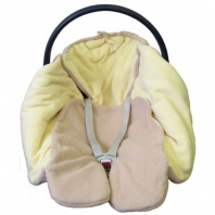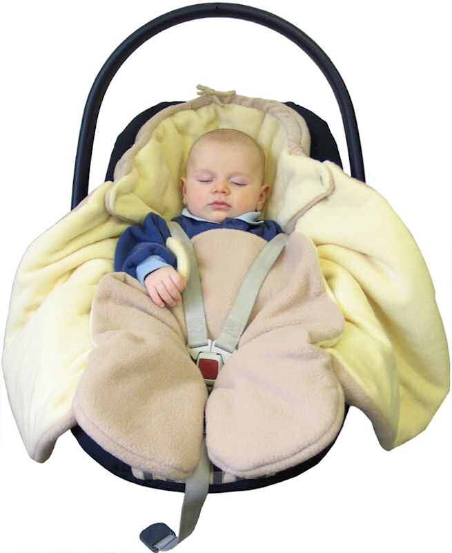 - stiahnutím okolo hlavy dieťaťa sa vytvorí kapucňa, ktorá chráni dieťa pred chladom