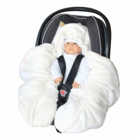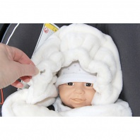 - stiahnutím okolo hlavy dieťaťa sa vytvorí kapucňa, ktorá chráni dieťa pred chladom