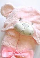 Jemná velúrová osuška, či ovinováčik alebo deka s kapucňou a 3D aplikáciou macka.