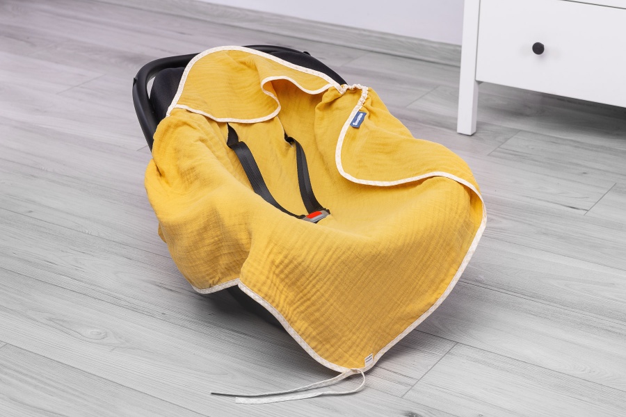 Mušelínový ovinováčik/zavinovačka do vajíčka . Jemný, vhodný predovšetkým na leto, alebo na doma do interiéru. Zabraňuje prehriatiu dieťaťa vďaka svojej ľahkosti a vzdušnosti . Má otvory na 3 bodové bezpečnostné pásy a kapucňu.