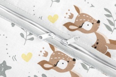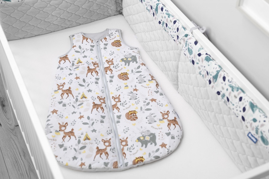 Bavlnený spací vak vhodný na zimné, či prechodné obdobie pre deti od 9-18 mes. Obsahuje obojstranný rýchly zips. Antialergická výplň. Potlač lesných zvieratiek .