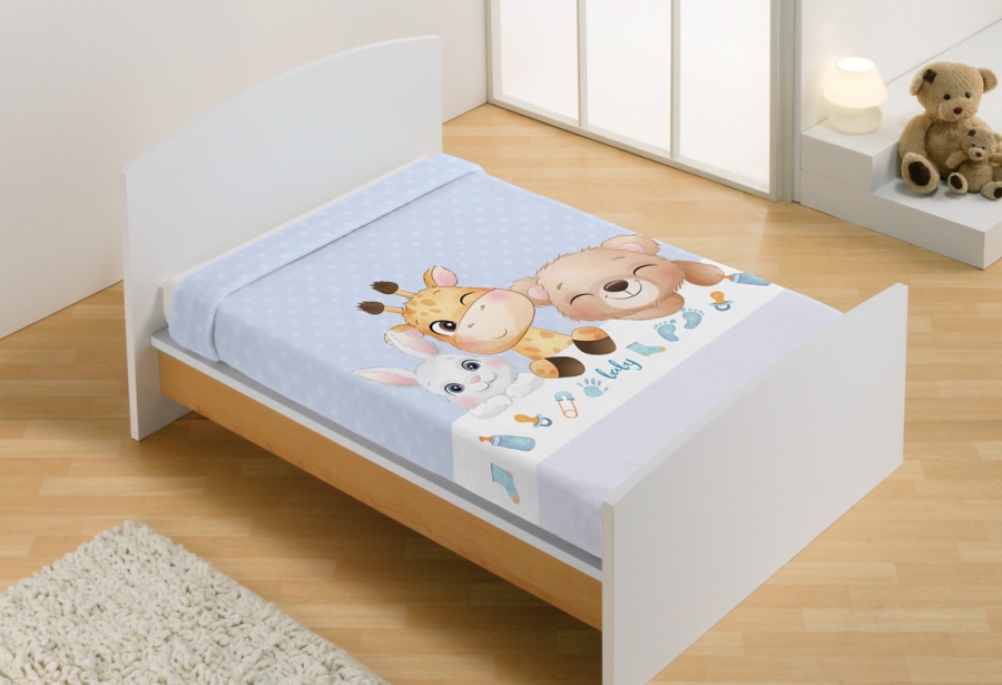Jemná teplá deka španielskej značky Manterol s nostalgickou milou potlačou veselých zvieratiek.