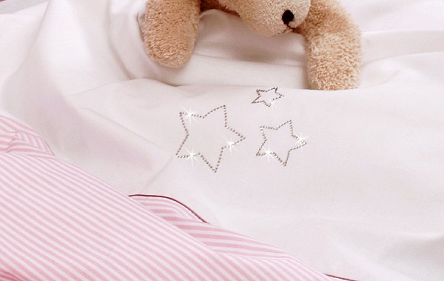 Bebelini 3 časťová sada so štrasom do postieľky Bebelini Shiny Nihgts White&rose