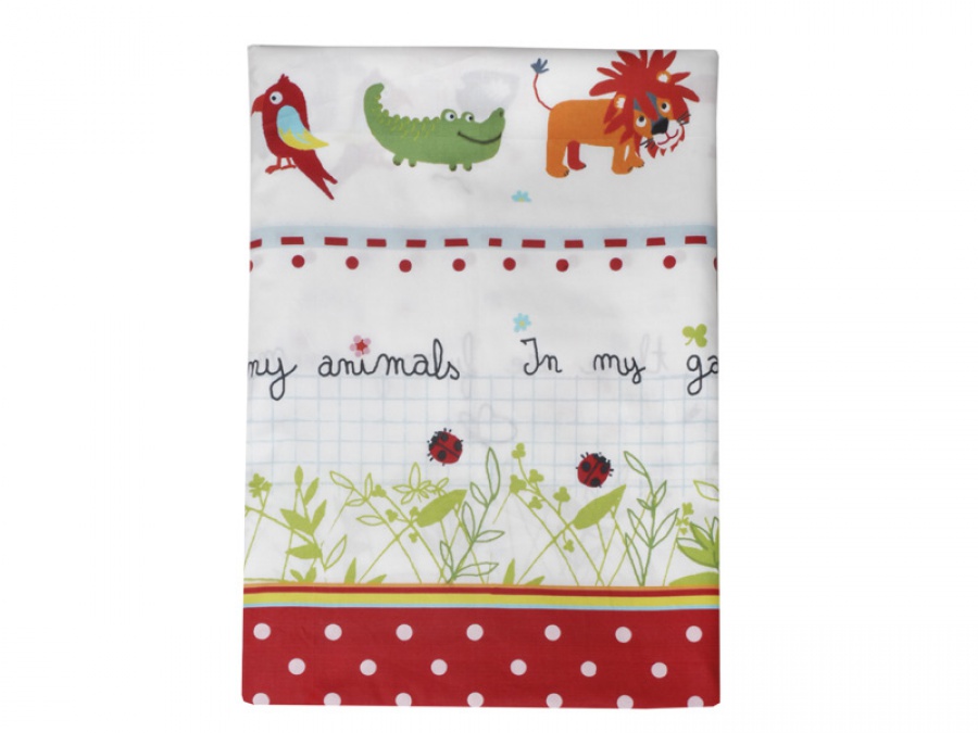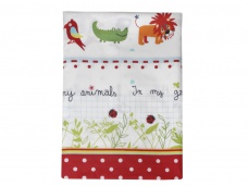 3 časťová sada z červeno-bielej kolekcie Lúka s potlačou lúčnych kvetov a veselých zvieratiek. Svieža kombinácia červenej a bielej farby vženie do detskej izby čerstvý vzduch.