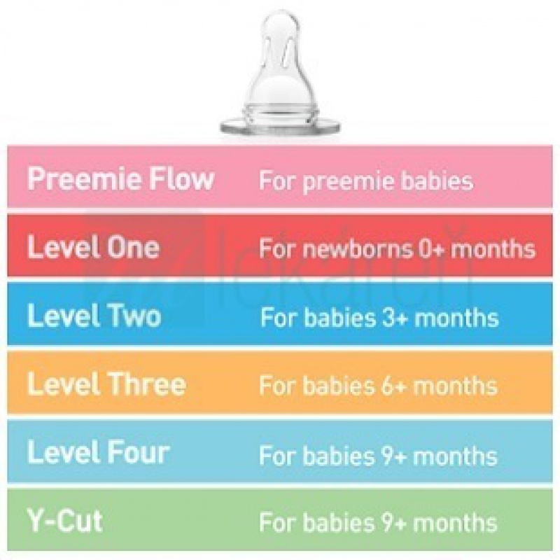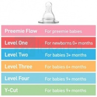 Jednotlivé veľkostné typy (Level) majú priradenú štandardne najvhodnejšiu vekovú skupinu dieťaťa. Individuálne je však potrebné zvážiť použitie najvhodnejšieho typu cumlíka pre Vaše dieťatko. (Je možné, že mu podľa veku odporúčaný typ cumlíka nebude sedieť a potrava mu bude tiecť príliš pomaly alebo naopak príliš rýchlo. Potom je potrebné použiť cumlík o jeden Level vyšší resp. nižší oproti aktuálne používanému.)