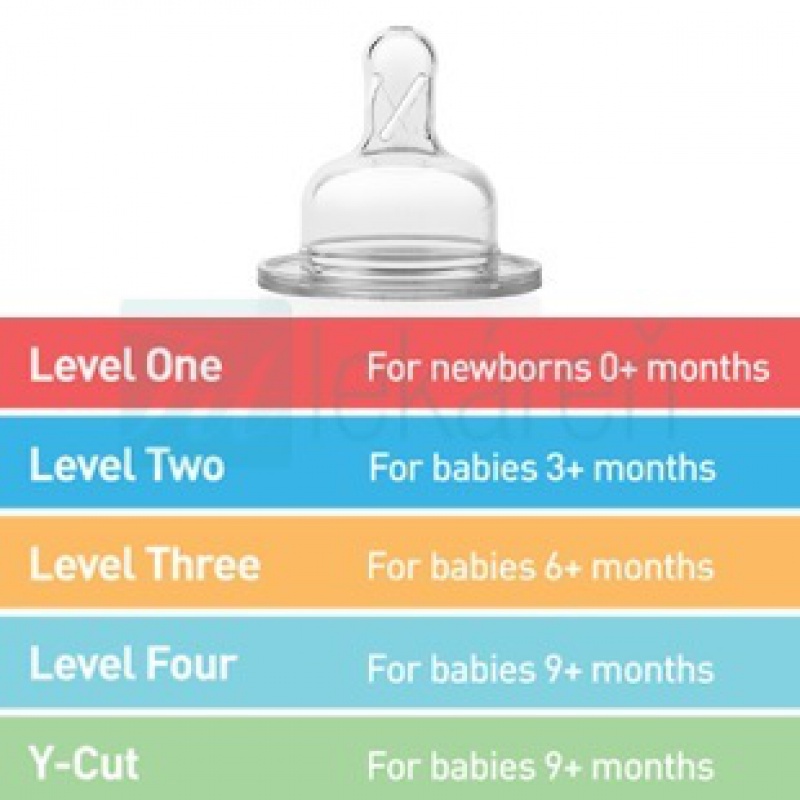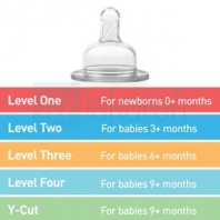 Jednotlivé veľkostné typy (Level) majú priradenú štandardne najvhodnejšiu vekovú skupinu dieťaťa. Individuálne je však potrebné zvážiť použitie najvhodnejšieho typu cumlíka pre Vaše dieťatko. (Je možné, že mu podľa veku odporúčaný typ cumlíka nebude sedieť a potrava mu bude tiecť príliš pomaly alebo naopak príliš rýchlo. Potom je potrebné použiť cumlík o jeden Level vyšší resp. nižší oproti aktuálne používanému.)