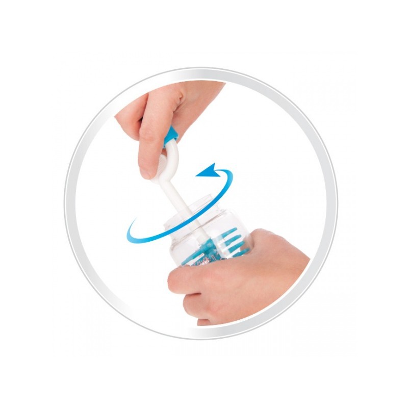 Jemné silikónové štetinky zaručujú umývanie fľaše pred samotnou sterilizáciou bez poškodenia.