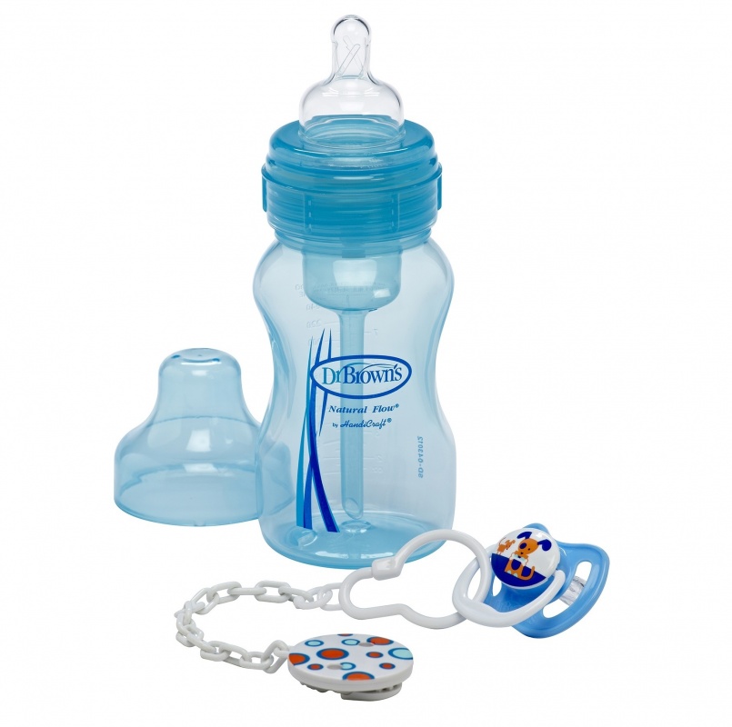 Antikoliková kojenecká fľaša americkej značky Dr. Brown? s patentovaným systémom odvzdušňovania, širokým hrdlom v darčekovom balení. Odporúčaná pediatrami aj na Slovensku.