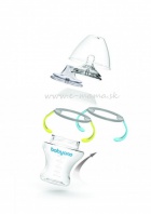 Kompatibilita kolekcie umožňuje individuálne prispôsobenie výrobkov aktuálnym potrebám dojčiat. Fľašu môžete zmeniť na fľašu s mäkkým náustkom a rukoväťou.