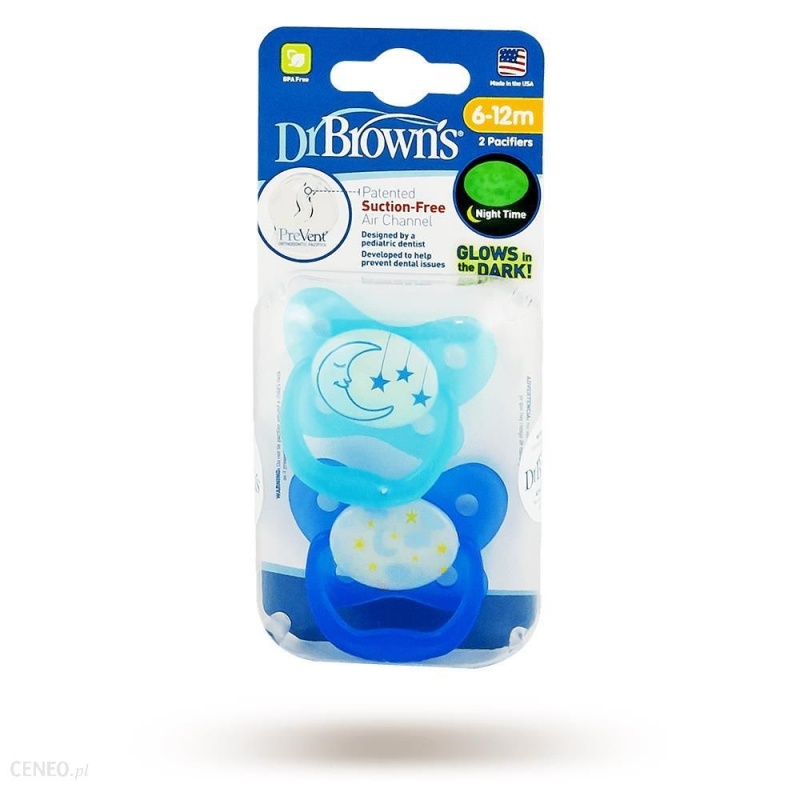 Ortodontický cumlík PreVent Dr Brown je určený pre deti 6-12m. Jeho správny tvar prispieva k riadnemu vývoju ústnej dutiny dieťaťa. Gumená špička cumlíka sa rozširuje saním, čím udržuje tlak na minimálnej hodnote . Okrem toho, skelet cumlíka , ktorý je tenši než dvojnásobok štandardných modelov, zabezpečuje zníženie negatívneho vplyvu na ústa a zuby dieťaťa. Tento model je tiež vybavený ventilom, ktorý znižuje tlak na podnebie a tým minimalizuje riziko nesprávneho vývoja zhryzu v budúcnosti.