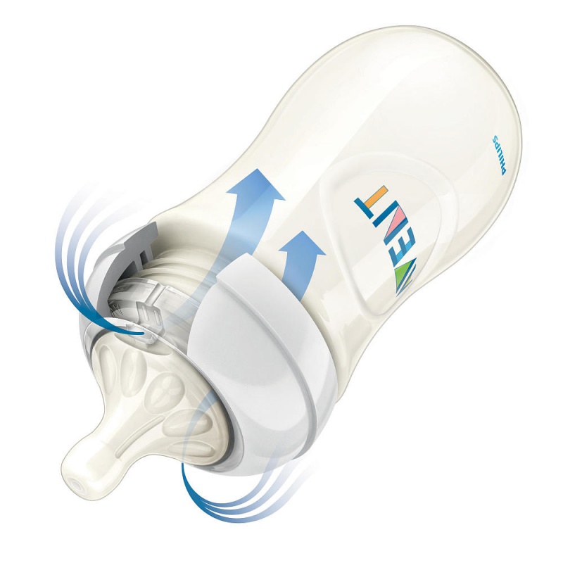 Extra jemný silikónový cumlík AVENT má jedinečný patentovaný okraj, ktorý má inovovaný dvojitý ventil. Cumlík umožňuje prúdenie vzduchu do fľaštičky počas kŕmenia, čím zamedzuje vzniku vákua vo fľaštičke. Dieťa sa nemusí cumlíka pri kŕmení púšťať a môže piť súvisle ako pri dojčení bez prehĺtnutia vzduchu.