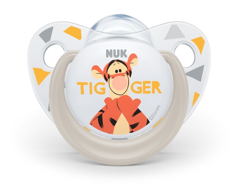1 ks silikónový upokojujúci cumlík s motívom postavičiek macka Pooh. Ortodontický sploštený tvar savičky. 0-6 mes.