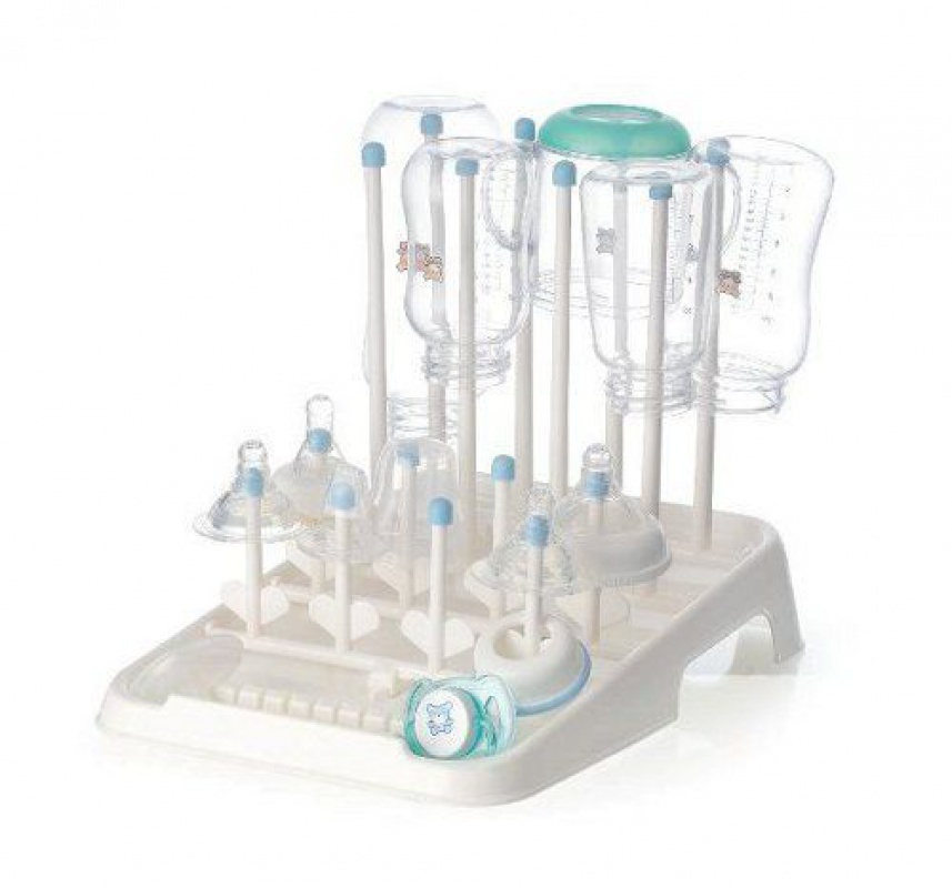Praktický stojan na sušenie fliaš a cumlíkov. Pojme až 8 fliaš spolu s príslušenstvom. Vďaka pohyblivým vidliciam sa ľahko skladá.