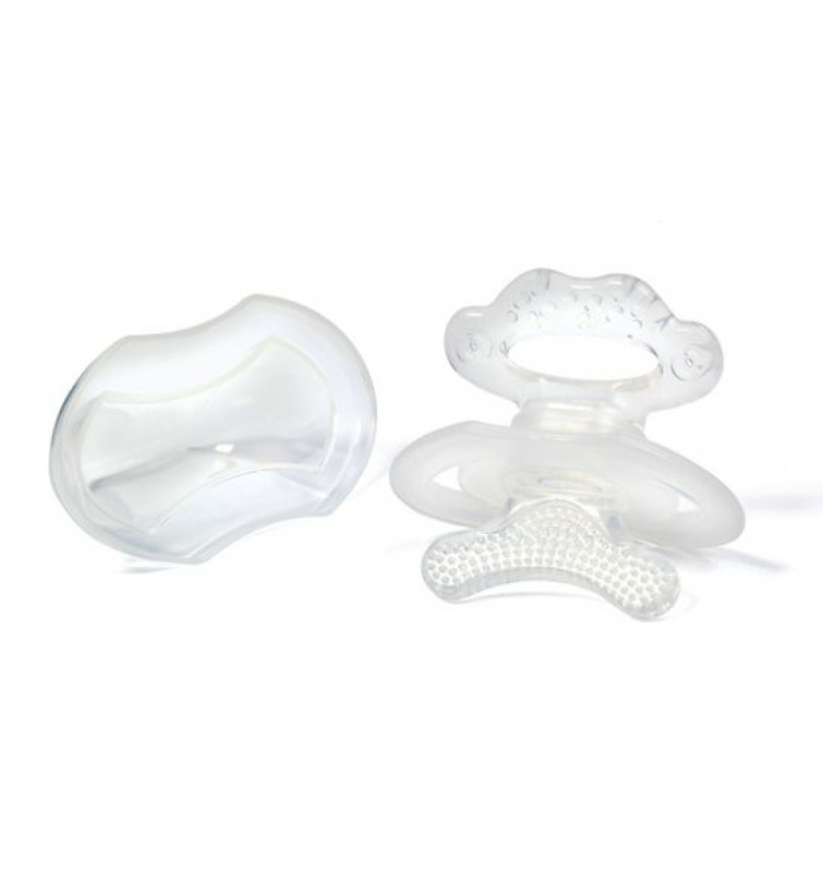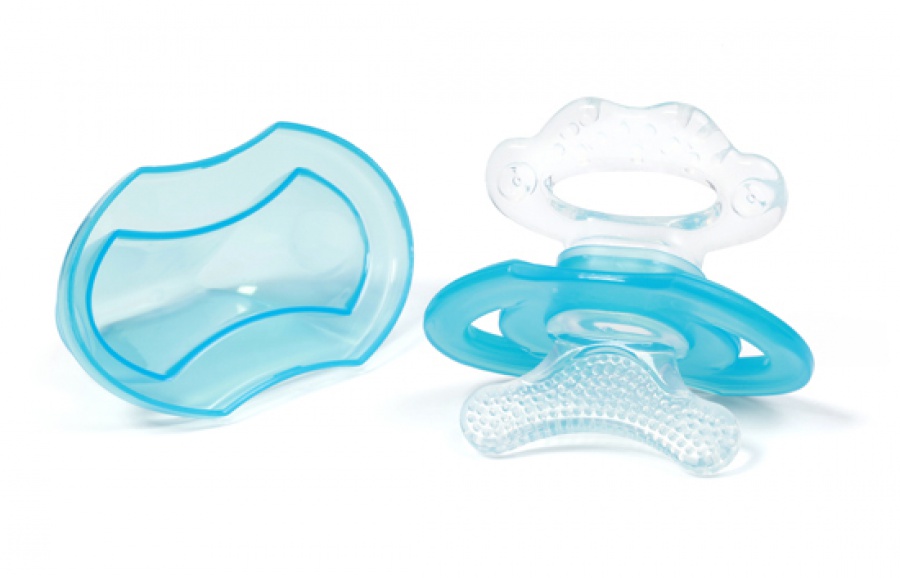 Chladenie v chladničke, nie mrazničke. Hryzadlo na ústnej časti obsahuje kanáliky (vyhĺbená časť) pre aplikáciu gélu proti bolesti. Hryzadlo obsahuje hygienickú krytku.
