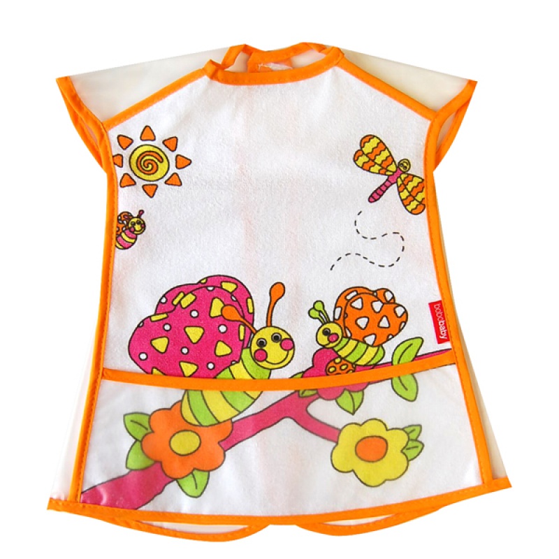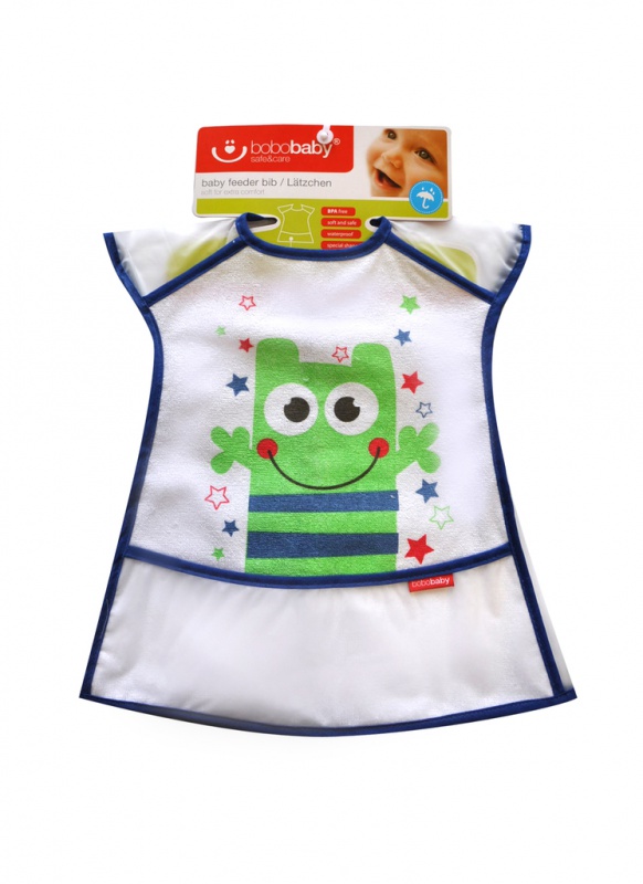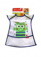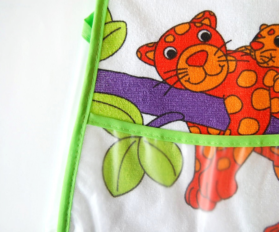 Podbradník s pútavým farebným motívom pre deti od 24m+. Materiál froté bavlna podšívaná voskovaným plátnom (PEVA) chráni dieťatko pred ušpinením a priesakom tekutín. Jemný, poddajný, vhodný na doma, aj na cestovanie. Zásterka má na zadnom dieli suchý zips.