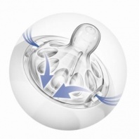 Mäkký štruktúrovaný široký cumlík sa vernejšie podobá prsníku.