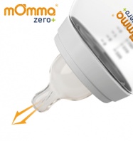 Náhradné silikónové cumlíky na fľaše mOmma. Ergonomický tvar, mäkký a bezpečný silikón bez bisfenolov. Systém zabraňujúci kolikám. 2 ks v balení