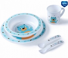 Vhodná do mikrovlnky a umývačky riadu. K chuti do jedla prilákajú krásne farebné motívy. Zaoblené tvary lyžičky a vidličky sú bezpečné a nedráždia ďasná dieťatka.
