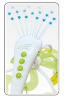 Kolotoč vybavený projektorom meniacim farbu. 3 pripevnené hrkálky spríjemnia vášmu dieťaťu čas Projekcia zaujme pozornosť dieťatka Klavírne melódie a veselé melódie, uspávanky a prírodné zvuky Ovládanie hlasitosti. Jednoduchá montáž.