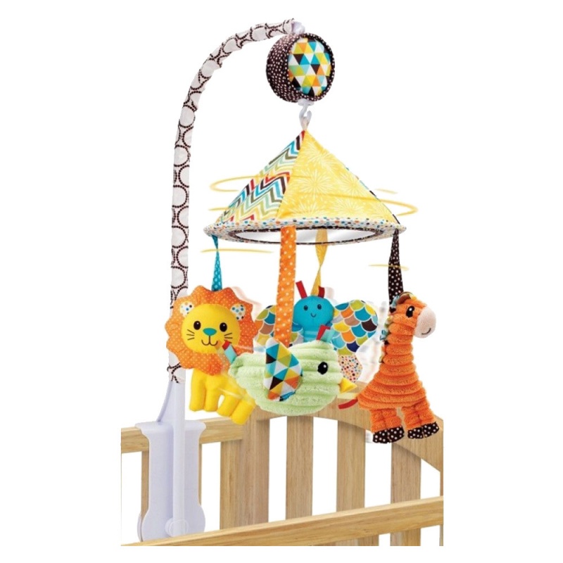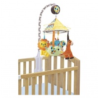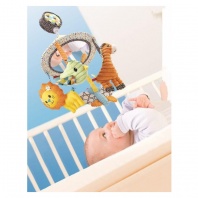 Hudobný kolotoč so štyrmi zavesenými zvieratkami a bezpečným zrkadielkom zabaví aj pomôže upokojiť vaše bábätko v postieľke. Po natiahnutí kolotoč hrá uspávanku a zvieratká sa otáča. Hudobný box i rameno kolotoča sú potiahnuté textilným poťahom.