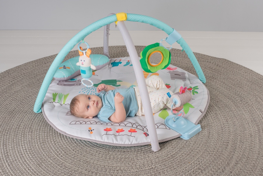Mäkká hracia deka s množstvom rôznorodých aktivít pre skúmanie a objavovanie je navrhnutá tak, aby podporovala dieťa k hre na brušku.