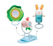 Originálne odnímateľné hračky upútajú pozornosť dieťaťa a zaistia mu hodiny zábavy. Hračky je možné zavesiť nad dieťa na oblúky hrazdy pri hre na chrbte alebo upevniť do stojanu pred dieťa pri hre na brušku: