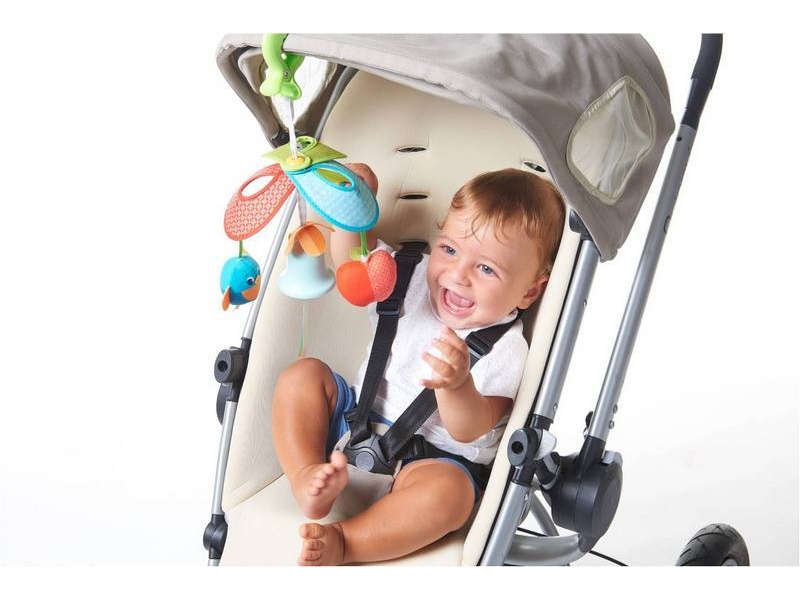 Závesná hračka Tiny Love zaistí zábavu pre vaše dieťa na cestách. Vďaka plastovému klipu je možné ju ľubovoľne zavesiť na autosedačku, kočík a pod. Zvonček pri pohybe jemne cinká. Zavesené hračky hrkajú a šuštia. Bezpečné zrkadlo, výrazné farby a rôzne tvary a textúry udržia pozornosť dieťaťa.