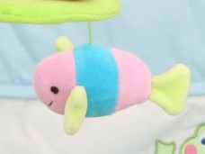Plyšový kolotoč v jemných ružovo zelených farbách vhodný pre malé princezničky. Rybky a žabky s milými usmievavými tváričkami.