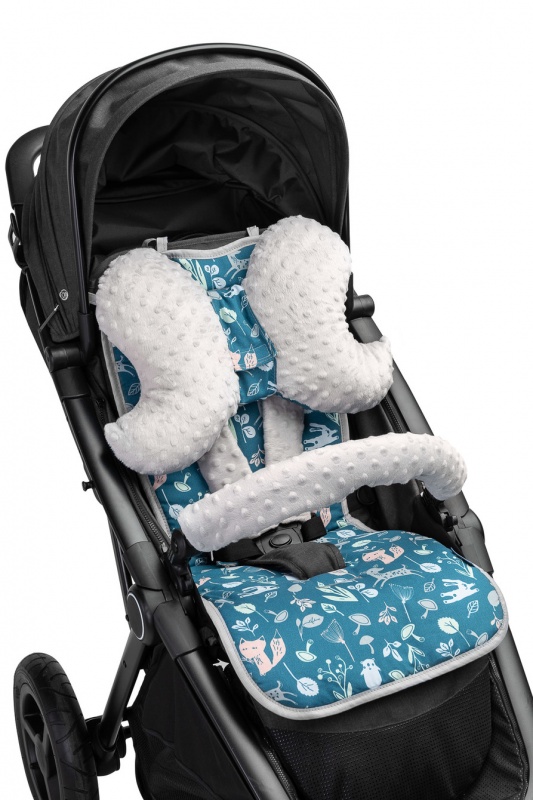 - najmä v lete, keď má dieťa odhalenú pokožku je príjemnejšie sa dotýkať tejto mäkkej vložky než originálneho tuhého čalúnenia kočíka alebo autosedačky