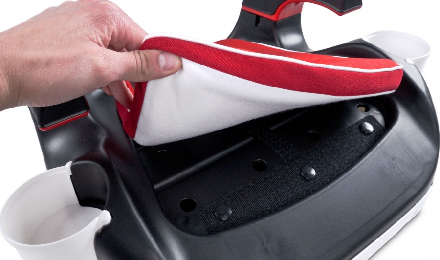 - priestranné sedadlo vybavené hrubou poduškou zabezpečujúcou dieťaťu vlastný priestor a pohodlnú jazdu