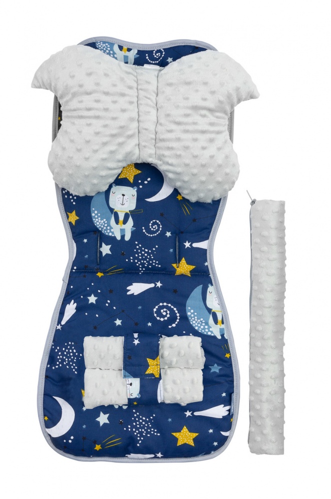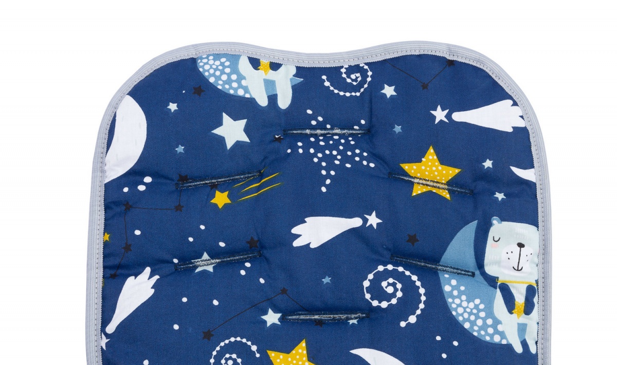 • Univerzálne otvory na popruhy umožňujú jednoduché prispôsobenie vložky rôznym typom kočíkov
