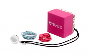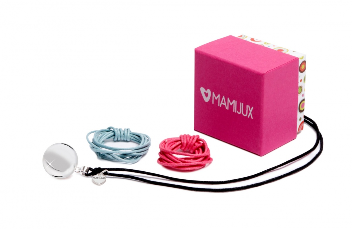 MAMIJUX® Classic je sofistikovaný prívesok pre ženy v očakávaní, vyrobený z medi s strieborným poťahom. Vďaka trom veselým farebným šnúrkam si mamičky môžu zmeniť farbu podľa svojho oblečenia, pohlavia dieťaťa a svojho nálady.
