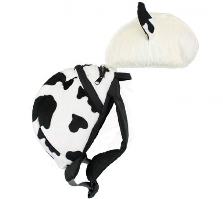 Vytiahnutím kapucne z batohu sa dieťa v okamihu zmení na malú nezbednú kravičku s očkami a uškami.