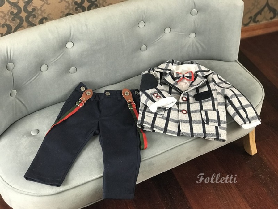 Folletti A009 Slávnostný detský oblek s trakmi