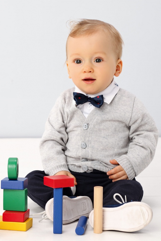 Chlapčenský komplet na slávnostné príležitosti s jemným merino svetríkom v béžovej, sivej, alebo tmavomodrej farbe.