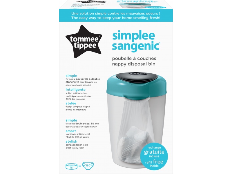 Kôš na plienky s antibakteriálnou fóliou Tommee Tippee Sangenic Simplee ponúka jednoduchý spôsob, ako udržať v detskej izbe čistotu bez zápachu. Jednoduché použitie - otvorte vonkajšie veko, pretlačte plienku sklopným vekom a uzavrite. Vďaka fólii aj sklopnému veku chráni okolie pred zápachom.